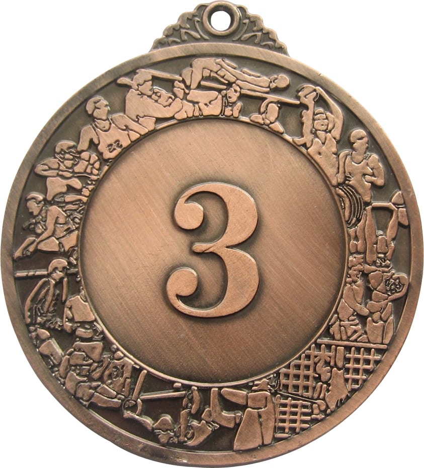 Стальная медаль, увековечит достижения спортсменов на соревнованиях любого уровня. Модель имеет серебряный и медный цвет, соответствующий занятому месту. Увеличенный диаметр совместно с гравировкой спортсменов каждого вида спорта, придает медали внушительный вид. Есть дужка для легкого крепления на ленту.Особенности и преимущества: